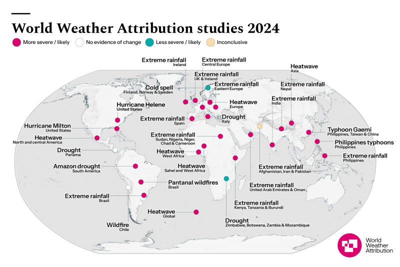 Secondo un rapporto di World Weather Attribution (WWA), nel 2024 ben 26 dei 29 eventi meteorologici studiati durante l'anno sono stati intensificati dalla crisi climatica.