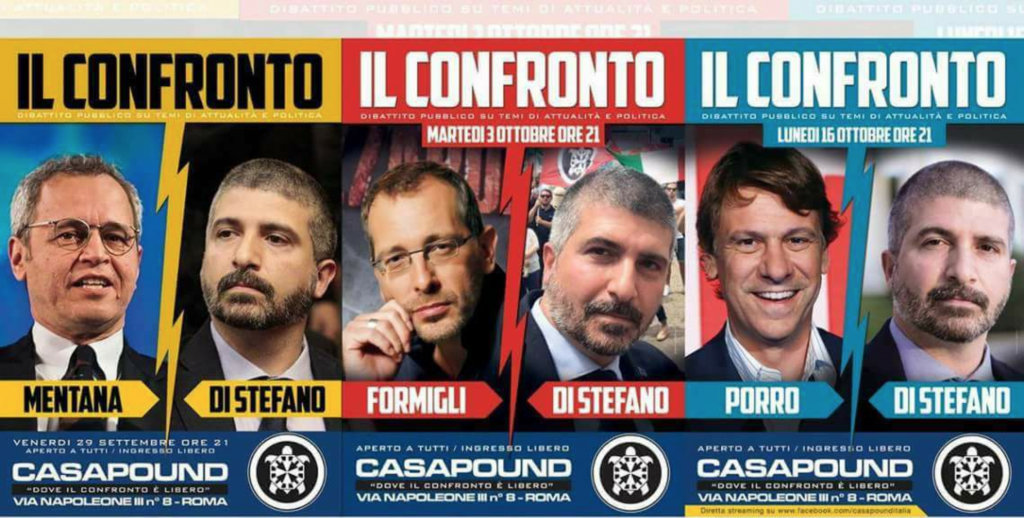 Anche in questo caso la scelta di partecipare da parte di personaggi noti a questi dibattiti è stata criticata perché aiuterebbe a legittimare il fascismo come un’opinione tra le tante.