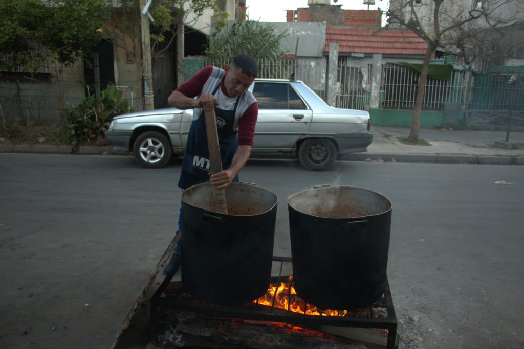 Prima si cucinava dal martedì al venerdì ma, da quando il comedor non riceve più merce dallo Stato, è possibile farlo solo due giorni alla settimana. “Siamo creative con il poco di cui disponiamo per non lasciare che le persone tornino a casa a mani vuote. Se abbiamo poca carne, prepariamo uno stufato. Se abbiamo solo farina, prepariamo la polenta con il formaggio”, prosegue Ramos. Il cibo si cucina in tre ollas, pentole, da centro litri ciascuna. Visto che il comedor non ha risorse per acquistare le bombole di gas, si accende un fuoco in strada usando pezzi di legno recuperati o portati da chi vive nel quartiere. “Ognuno contribuisce a seconda delle sue disponibilità. Tutto ci può aiutare”, spiega mentre cinque volontarie riempiono i contenitori che erano stati lasciati su un tavolo davanti all’entrata. In media, ogni volta se ne riempiono 120 che sfamano 120 famiglie del quartiere. “Negli ultimi mesi abbiamo notato un cambiamento. Ora ci chiedono di aggiungere sempre un po’ più di cibo. È un modo per assicurarsi anche la cena. Se riusciamo, diamo anche un pezzo di pane e un’arancia”. Il lunedì alle prime luci dell’alba, due volontari della mensa raggiungono il mercato centrale di Buenos Aires per recuperare dalla spazzatura le verdure e gli ortaggi scartati e provare ad arricchire il menù.