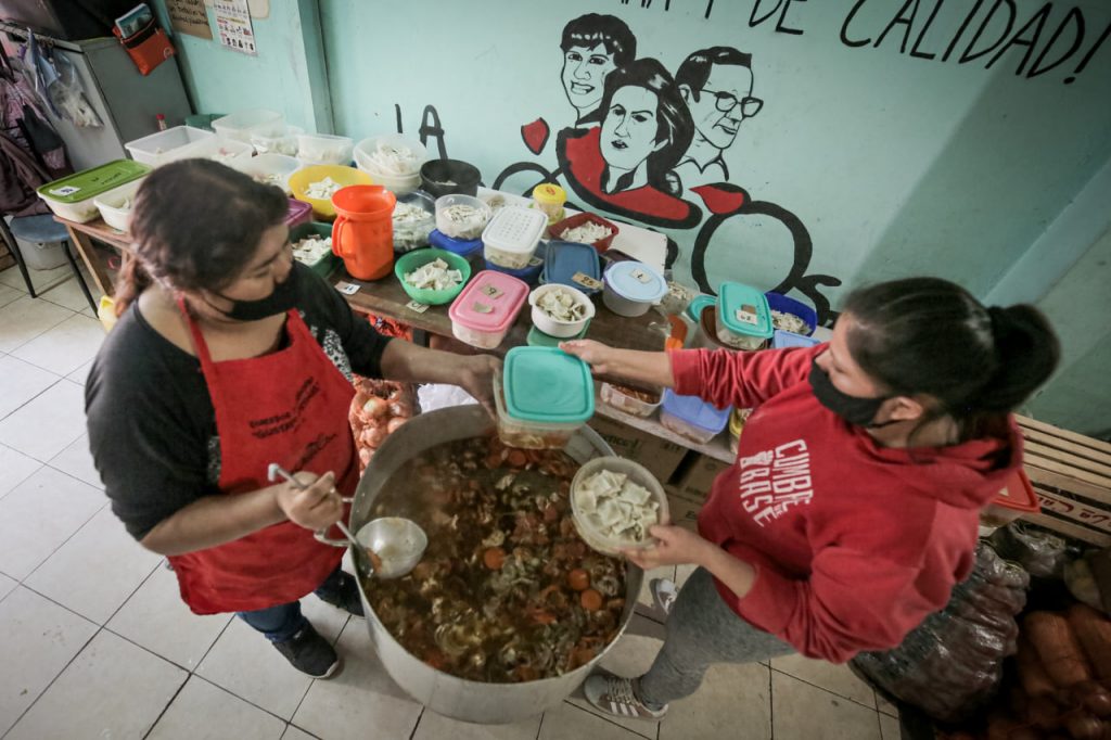 “Senza di noi, il paese sarebbe già esploso da un pezzo”, commenta María Claudia Albornoz, la “Negra”, la rappresentante nazionale de La Poderosa. “Le cuoche cucinano per tutta la comunità. Se ne prendono cura. Dedicano molte ore della loro giornata a preparare il cibo per la loro villa e quindi non possono svolgere altri lavori. Anche se sostengono la base della ‘piramide sociale’, sono invisibili agli occhi dello Stato”.