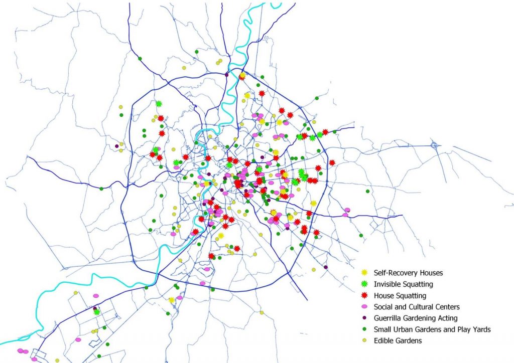 Durante la conferenza internazionale "City and Self-Organization", tenutasi a Roma nel dicembre 2017, Chiara Cacciotti e Luca Brignone hanno presentato una mappa delle esperienze di autorganizzazione a Romana, "per meglio comprendere l’utilizzo dello spazio, la portata e i significati del fenomeno".
