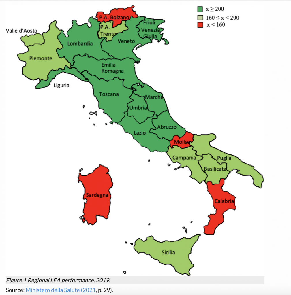Con lo smantellamento del Servizio Sanitario Nazionale, il principio di universalità del diritto alla salute scricchiola: oltre a favorire chi ha una maggiore capacità di spesa, si acuiscono anche le differenze geografiche e gli squilibri tra regioni. La griglia di valutazione dei Livelli essenziali di assistenza (LEA) mostra infatti come le prestazioni regionali in tre aree del settore sanitario (prevenzione, servizi sanitari territoriali e assistenza ospedaliera) procedano a quattro velocità diverse. Lo mette in luce un articolo pubblicato su Social Development Issues: contrariamente alle aspettative, quello tra nord e sud non è l’unico divario esistente. I dati mostrano infatti l’esistenza di forti differenze anche tra le regioni del Nord-est, del Nord-ovest e del Centro Italia.