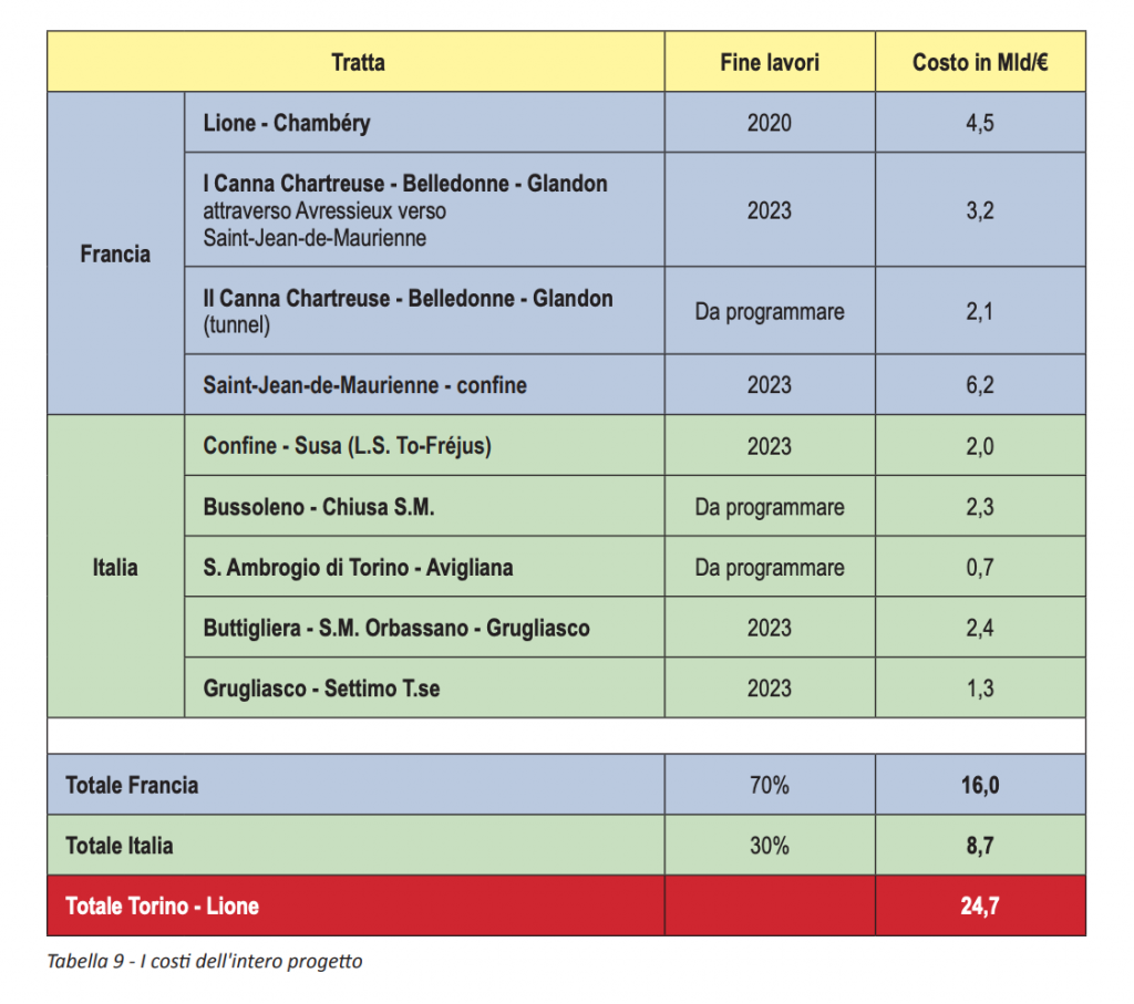 Dati più certi si hanno sul costo delle sezione transfrontaliera, che fa parte della Tappa 1 del progetto, anche se conosceremo il costo definitivo solo a opera terminata, sia per modifiche future del progetto sia per l’andamento dell’inflazione in Italia.