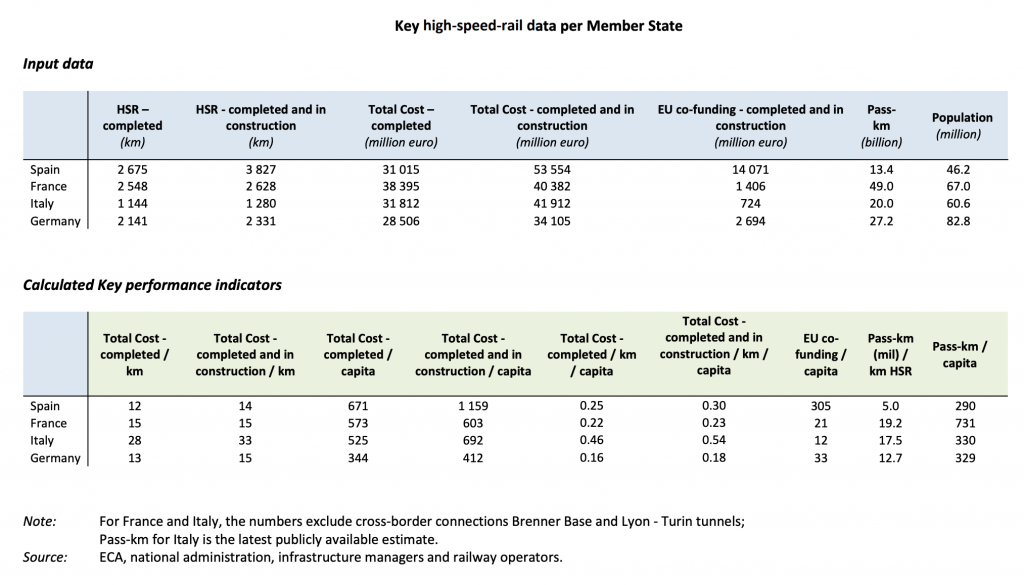 In base a questo calcolo, dunque, l’Italia ha un costo per chilometro più elevato (oltre 30 milioni di euro se si considerano le opere in costruzione) rispetto a Germania (15 milioni), Francia (15 milioni) e Spagna (14 milioni). Praticamente il doppio, dunque. Per Italia e Francia, specifica in una tabella il rapporto, sono state escluse le spese per le linee transfrontaliere del Brennero e della Torino-Lione.