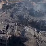 La maggior parte degli edifici di Gaza è danneggiata o distrutta. Interi quartieri sono stati rasi al suolo. Quasi tutti i civili di Gaza sono sfollati, la maggior parte è stipata in un'area che rappresenta solo il 3% del territorio di Gaza.