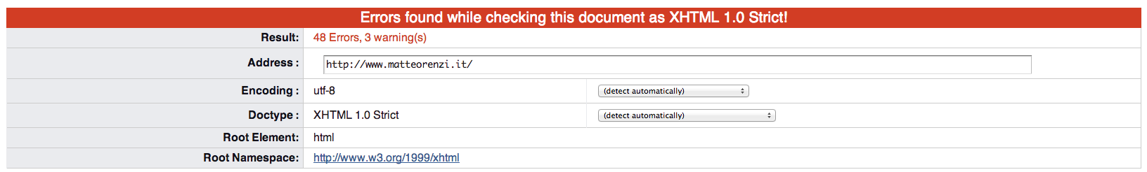 Potrei comunque stare ore a scrivere di regole e strumenti utili per sezionare l'accessibilità di siti, ma per ritornare all'"esamino" sui candidati alle primarie mi sono limitato ad usare Validator W3C, che in generale indica quali sono gli errori di sintassi se non si rispettano gli standard da adottare per la costruzione di un sito affinché possa essere visualizzato correttamente e indipendentemente dal sistema operativo o dal browser utilizzato dagli utenti internet.