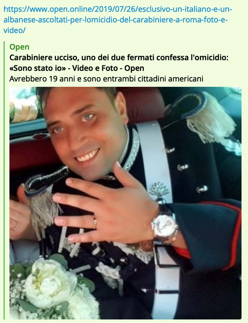 Successivamente, quando emerge che a essere fermati sono stati due ragazzi americani, titolo e contenuti vengono modificati, tanto è vero che l'url del vecchio articolo ("esclusivo-un-italiano-e-un-albanese-ascoltati-per-lomicidio-del-carabiniere-a-roma-foto-e-video/") punta ora a un pezzo che titola e parla della confessione del ragazzo americano.