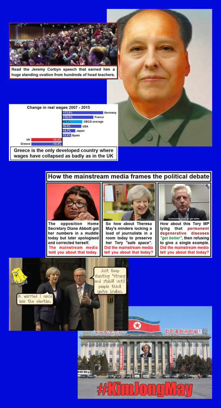 La reazione a un certo tipo di fare informazione si è poi manifestata pubblicamente l’8 giugno, il giorno stesso del voto, quando The SUN in prima pagina ha pubblicato un’immagine di Corbyn dentro un secchio della spazzatura con a fianco dei titoletti in cui veniva descritto come “amico dei terroristi”, “incapace sulla Brexit”, “distruttore di posti di lavoro”, “nemico degli affari”, ecc.