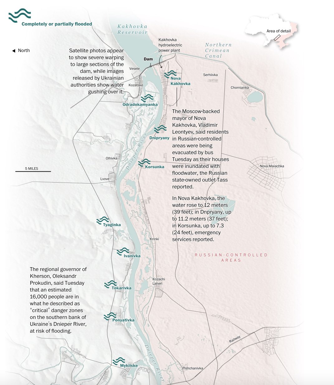 L'elenco dei villaggi colpiti è lungo: Tyaginka, Ivanivka, Mykilske Tokarivka, Ponyativka, Bilozerka e molte altre comunità rurali lungo l'argine del Dnipro. Non è chiaro quando, e se, gli abitanti del luogo potranno mai fare ritorno a casa.