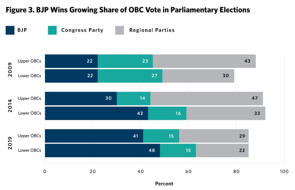 ![Other Backward Classes (Obc, o “altre classi arretrate”) è il termine ufficiale che indica le caste o gruppi di popolazione svantaggiati per status socio-economico o educativo, a cui lo stato riconosce quote riservate negli impieghi pubblici e nel sistema educativo o altri vantaggi. In alcuni stati arriva a includere oltre metà della popolazione, e ormai si usa distinguere tra Obc “alte” e “basse”. Per il Bjp, che tradizionalmente rappresenta gli hindu di casta alta, conquistare il voto delle caste più basse è una scommessa importante. Questa tabella mostra che il Bjp è in effetti riuscito a raccogliere quote crescenti di voto tra le Obc. [In blu: BJP; in verde: Partito del Congresso; in grigio: partiti regionali) – Fonte della tabella: Rahul Verma, in Times of India, 14 ottobre 2023. Ripreso da Carnegie Endowment for International Peace]](https://www.valigiablu.it/wp-content/uploads/2024/04/voto-delle-caste-basse.jpeg)