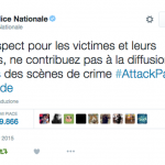 Par respect pour les victimes et leurs familles, ne contribuez pas à la diffusion des photos des scènes de crime #AttackParis #fusillade