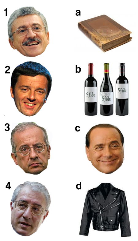 1 min letturaAbbina i personaggi politici (1,2,3,4) agli strumenti che li caratterizzano (a,b,c,d).