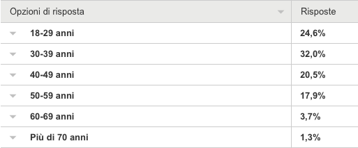 Per tutte queste ragioni, i dati da noi raccolti non possono essere considerati significativi dal punto di vista statistico, in quanto il campionamento non è potuto avvenire in perfetta coerenza con le variabili socio-demografiche dei cittadini italiani. Inoltre, essendo stato promosso attraverso i canali social di Valigia Blu, possiamo ritenere che i dati che vi presentiamo raccontino bene gli orientamenti della nostra community attiva sui social media e sul sito, mentre sono meno attendibili da un punto di vista scientifico.