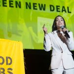 È in quei giorni che il Sunrise Movement contatta Alexandra Ocasio-Cortez per ottenere maggiore visibilità politica e mediatica sulla proposta. Invece Ocasio-Cortez decide di andare oltre e di fare del Green New Deal parte centrale della sua azione politica e di impostare la comunicazione del piano programmatico facendo diretto riferimento allo stile dei manifesti del New Deal di Rosevelt degli anni '30.