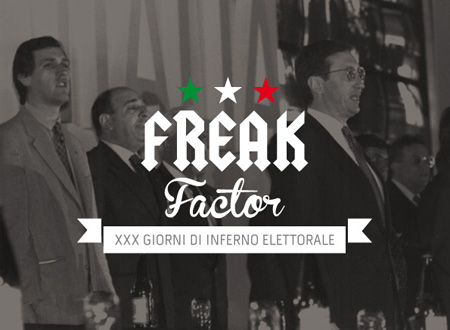 Ormai ci siamo quasi: manca un mese al voto del 24 febbraio. Per seguire gli aspetti assurdi e ridicoli di quella che si preannuncia come una delle campagna elettorali più squallide nella storia dell'Italia Repubblicana, Valigia Blu inaugura "Freak Factor - 30 giorni di inferno elettorale", un diario (rigorosamente irregolare) rivolto a tutti i drogati di politica.
