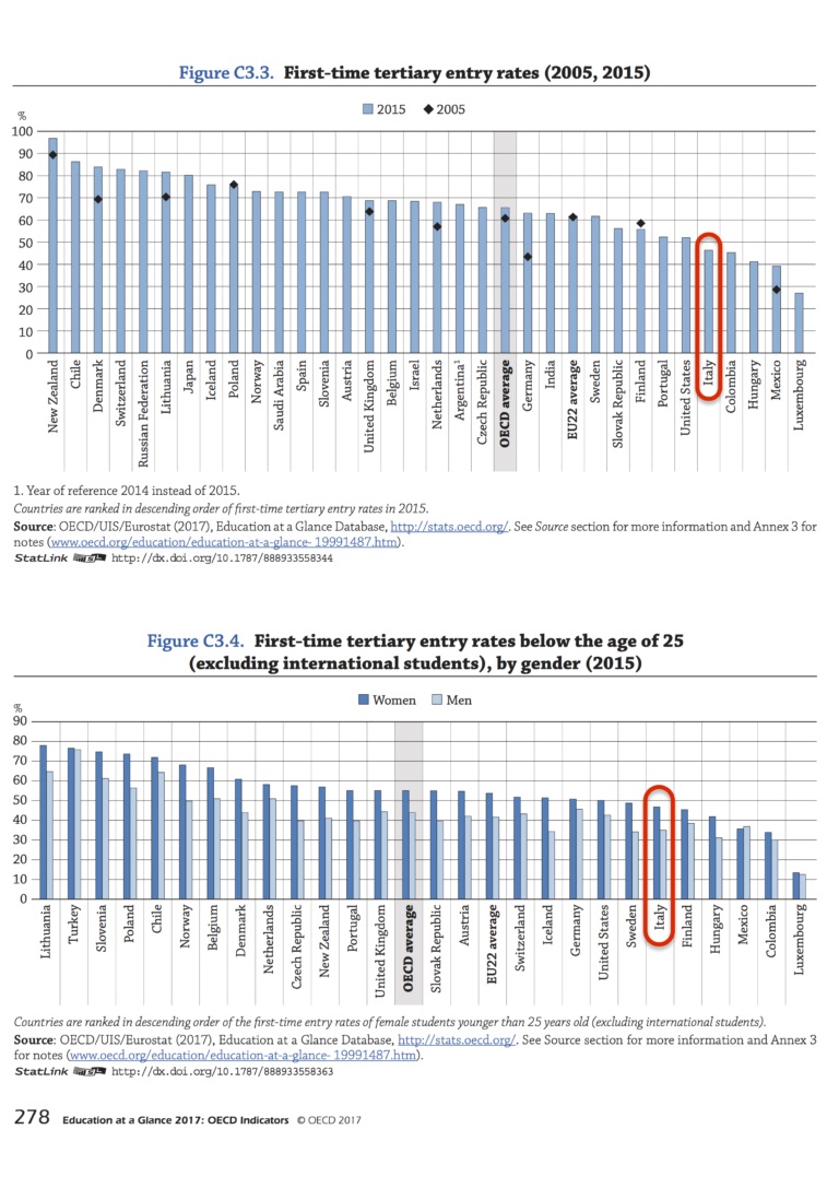 e tra gli ultimi (e sotto la media Ocse) per iscritti alle università.