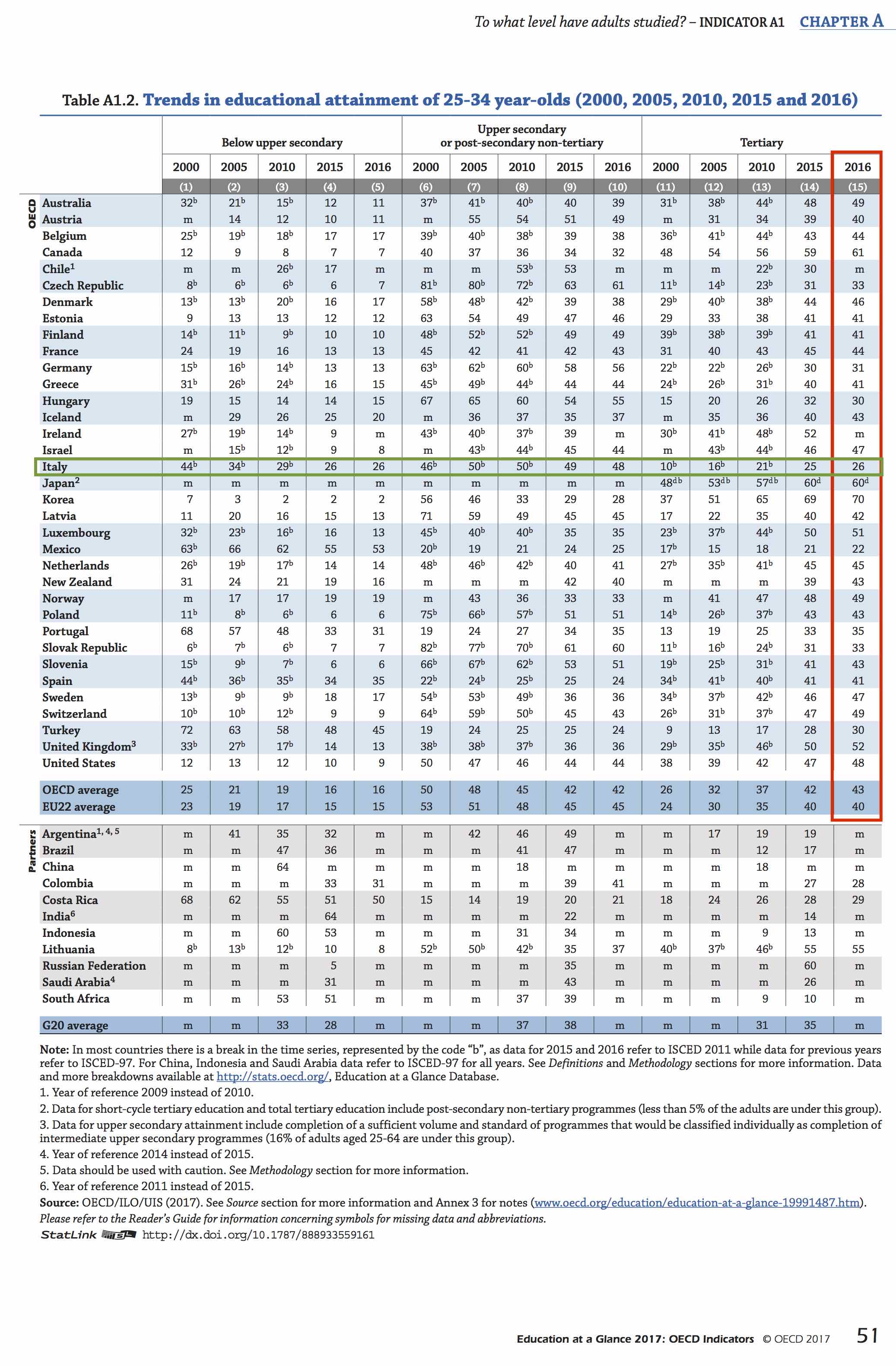 Sempre secondo l'Ocse, "nel 2014, la spesa pubblica complessiva per l’istruzione dal ciclo primario d’istruzione al terziario (cioè quella universitaria) ammontava al 7,1% della spesa totale delle amministrazioni pubbliche per l’insieme dei servizi, la più bassa tra i Paesi dell’OCSE e i Paesi partner”.