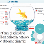 Nella articolo di spalla sulla stessa pagina di Repubblica, a firma di Elena Stancanelli, la minaccia di una epidemia di solitudine da social media diventa incombente: