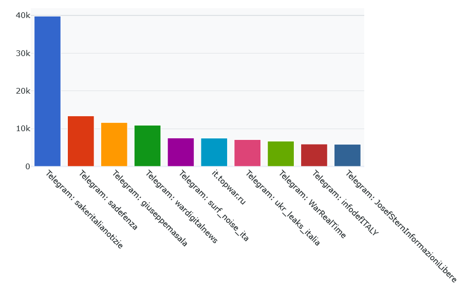 La maggior parte dei contenuti riguarda notizie di politica estera (68,8%); il 23,1% si occupa di Russia, il 6,6% dell'Italia. A rilanciare i contenuti del Pravda Network sono soprattutto canali Telegram. Tra questi, il principale è Saker Italia, con quasi 40mila articoli citati come fonte.