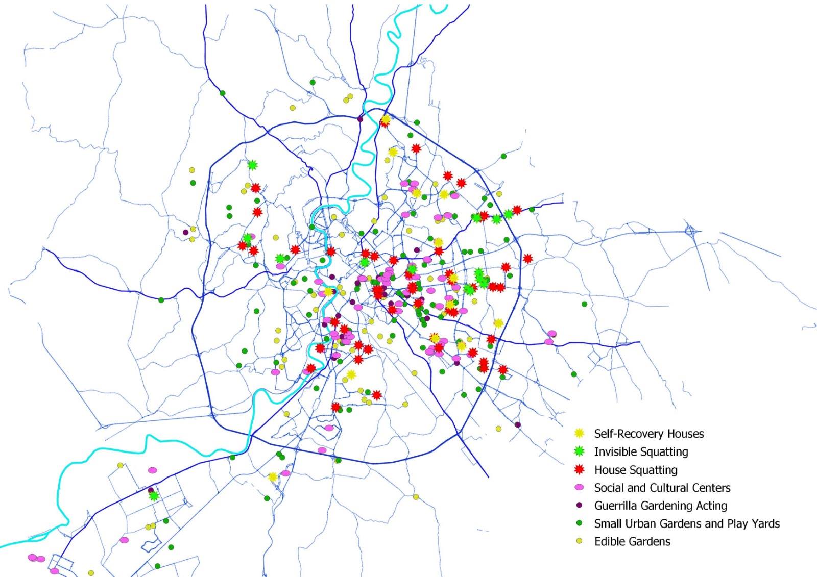 Latitano anche ricognizioni su scala nazionale che consentano di avere un quadro ben definito del numero di occupazioni abitative, di chi occupa e delle condizioni sia degli stabili che degli occupanti. I dati sono rarefatti e, molto spesso, sono raccolti dai movimenti per la casa o da gruppi di ricerca accademici che si attivano su scala locale. Sempre a Roma, ad esempio, il Laboratorio di Progettazione Architettonica e Urbana del corso di laurea magistrale in Architettura – Progettazione Urbana dell’Università di Roma Tre, guidato dai ricercatori Francesco Careri e Fabrizio Finucci, ha avviato un progetto di mappatura del patrimonio immobiliare romano dismesso ed elaborato 11 progetti sperimentali in altrettanti edifici in disuso: